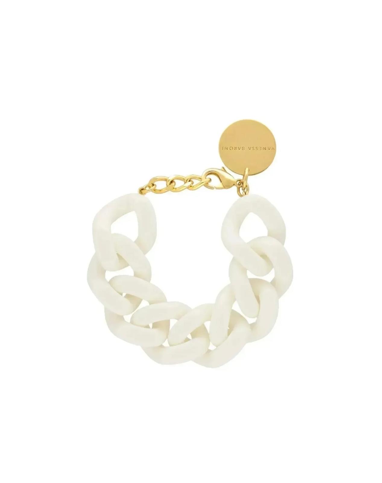 Ce bracelet aux maillons imposants est en acetate blanc.