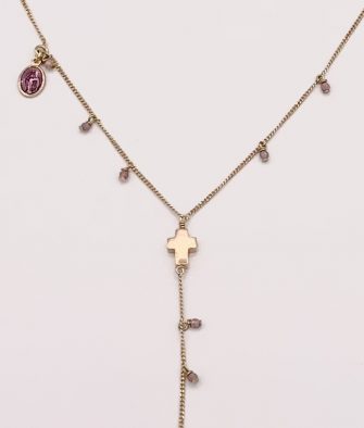 La chaine, embellie de pierres fines, est ornée d’une petite médaille émaillée et de croix.
