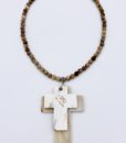 Ce collier court est en perles de Jaspe naturelle, le double pendentif est en corne.